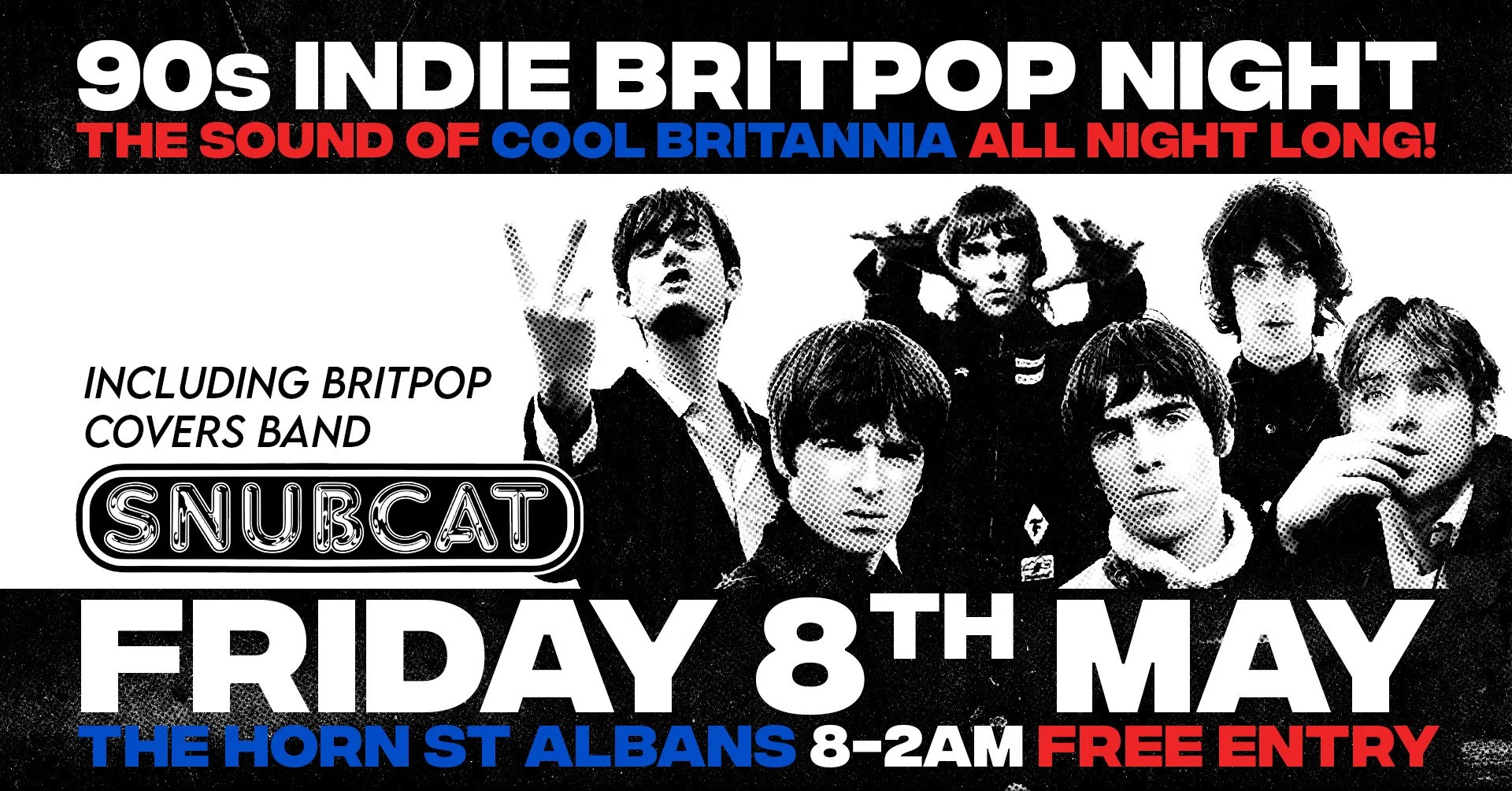Get ready to relive the iconic sounds of the 90s! Join us for a night packed with the best of indie and Britpop music, featuring a live performance by the incredible Snubcat—the ultimate Britpop covers band. If you’ve always wanted to hear your favorite hits from Blur, Oasis, Pulp, and more, Snubcat’s electrifying set will take you right back to the golden era of music.