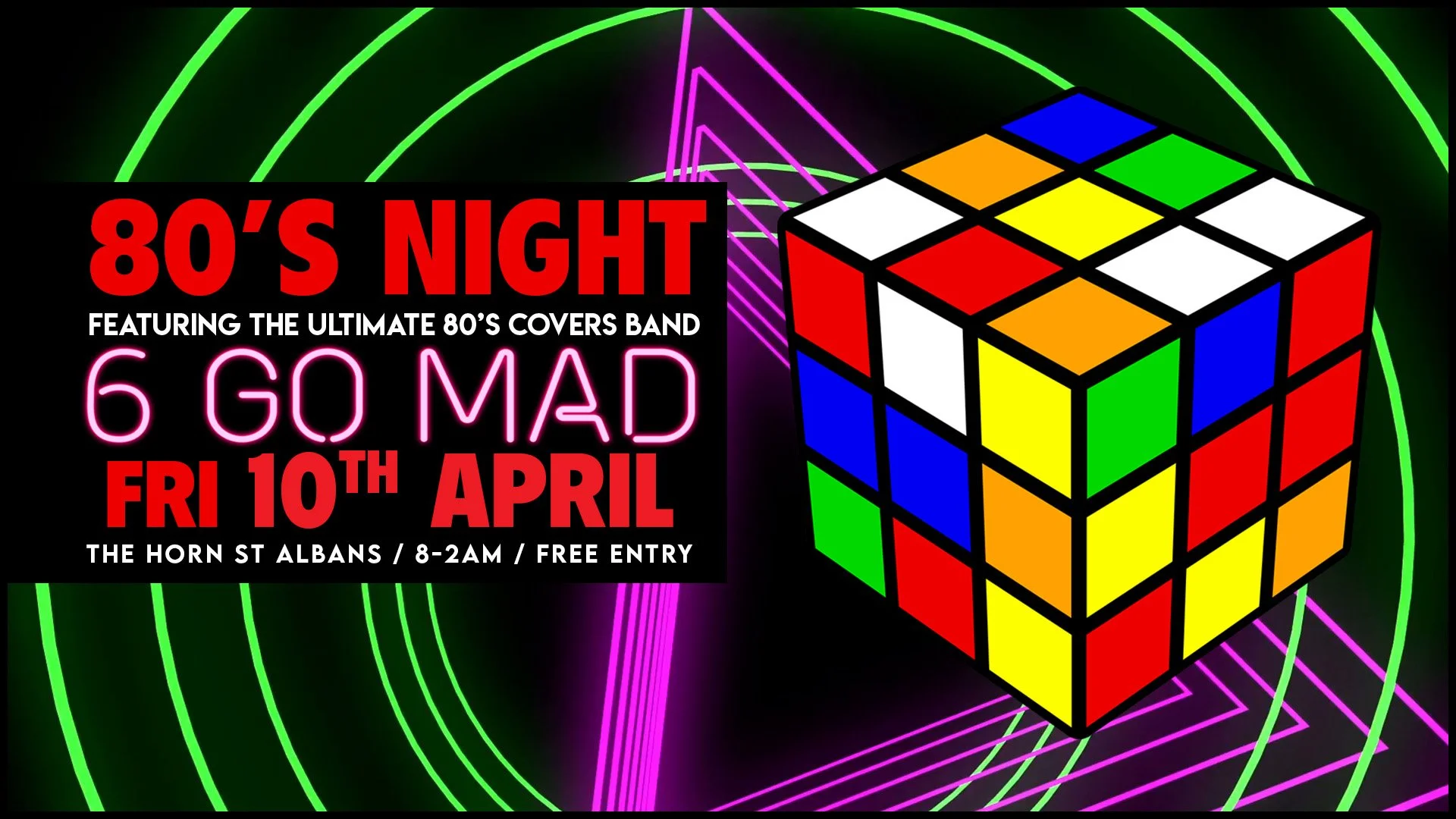Plus the Ultimate 80’s Party Covers Band – Six Go Mad (band onstage at 10pm)