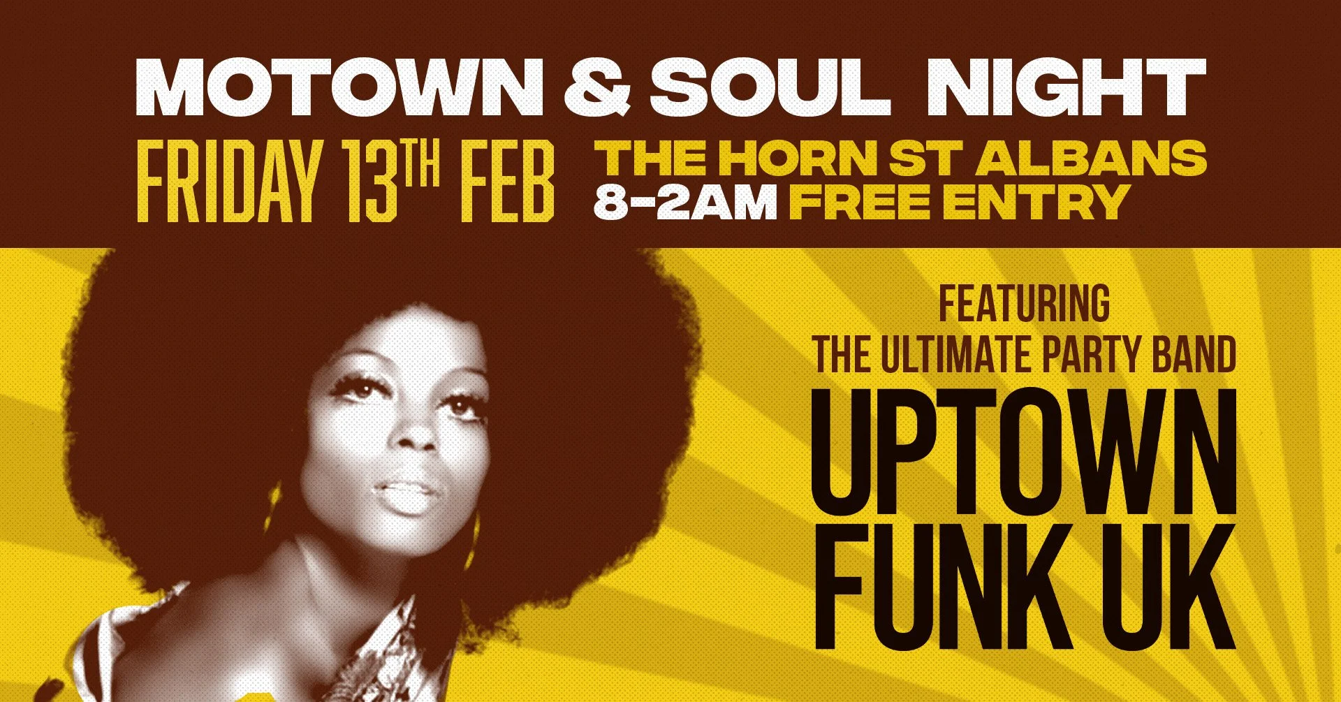 Come and jump on the 'Soul Train' and get down to an evening of Soul, Funk and Disco.
